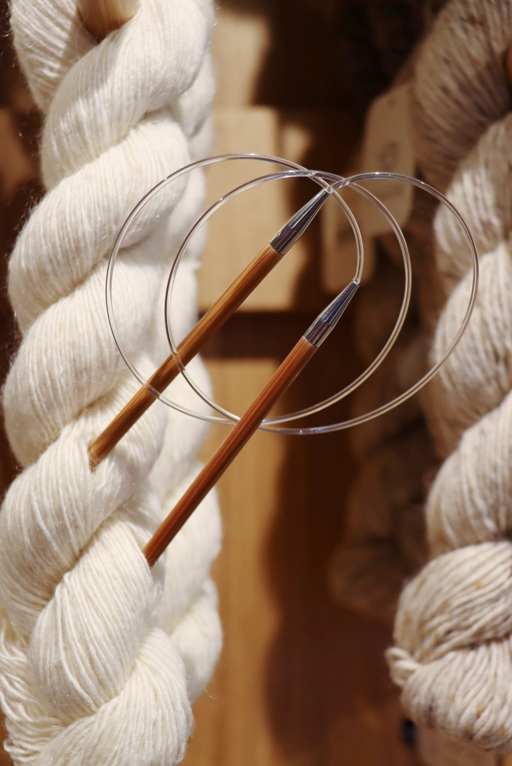 ChiaoGoos Spin Bamboo fast wire rundepinde er perfekt til strikning af større projekter såsom trøjer, sjaler og tæpper. De faste wire hjælper med at holde projektet jævnt fordelt på pindene og undgå, at de glider ud.
